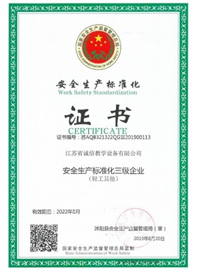 江蘇省誠(chéng)信教學(xué)設(shè)備有限公司成立于2003年,是一家專注教學(xué)設(shè)備研究開發(fā)、生產(chǎn)制造、銷售服務(wù)為一體的綜合性教育、服務(wù)型企業(yè),是江蘇省教育設(shè)備行業(yè)協(xié)會(huì)會(huì)員單位、中國(guó)教育裝備行業(yè)協(xié)會(huì)會(huì)員單位,公司先后通過(guò)ISO9001國(guó)際質(zhì)量管理體系認(rèn)證、IS14001國(guó)際環(huán)境管理體系認(rèn)證、OHSAS18001職業(yè)健康安全管理體系認(rèn)證。數(shù)十年的激勵(lì)前行鑄就企業(yè)優(yōu)質(zhì)的產(chǎn)品品質(zhì)和服務(wù)質(zhì)量。